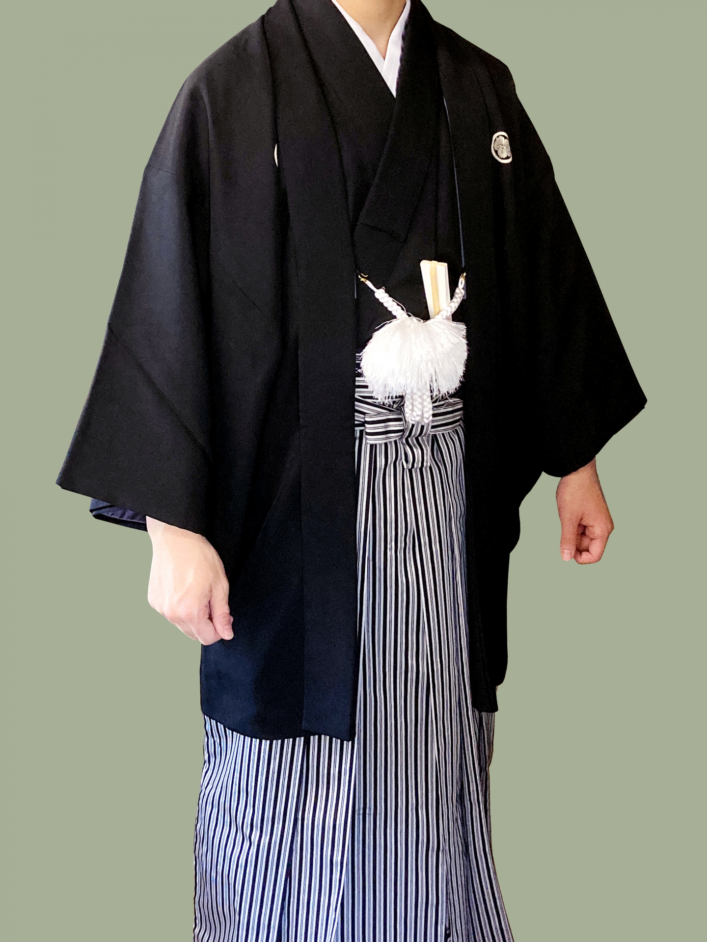 男袴は、紋付羽織袴などフォーマルな場面で、男の礼装として用いられます。女袴に比べてやや長く、裾が広がりすぎない直線的なラインが特徴です。多くの場合、股が分かれた馬乗り袴で、和装のままでも足を開きやすく設計されています。