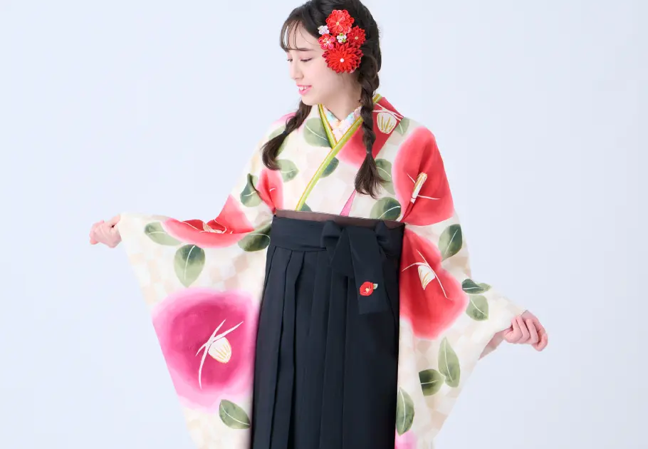 袴の単品レンタルもできるから、持っている着物とのコーディネートを楽しめます。重ね衿など、ワンポイントのおしゃれコーディネートもご相談ください。