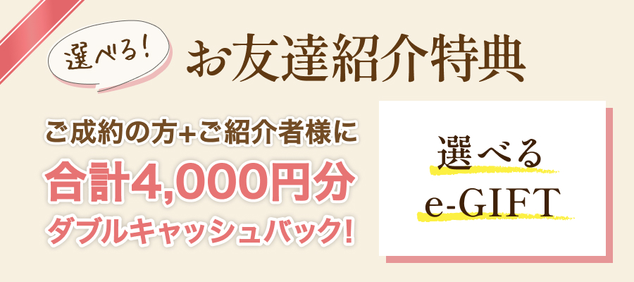 ご成約されたお客様が、お友達にアイドルをご紹介していただきご成約すると、それぞれに合計4,000円分のダブルキャッシュバック!